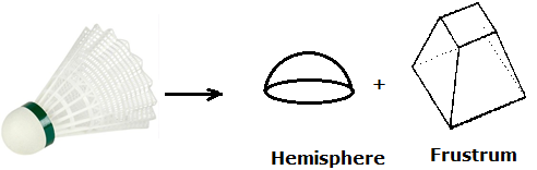The cork of a shuttle is in hemispherical shapes and the upper part is in the shape of frustum of a cone. Therefore, it is a combination of frustum of a cone and a hemisphere.