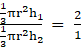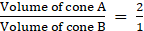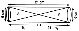 Two solid cones A and B are placed in a cylindrical tube as shown in the figure. The ratio of their capacities is 2 : 1. Find the heights and capacities of cones. Also, find the volume of the remaining portion of the cylinder.