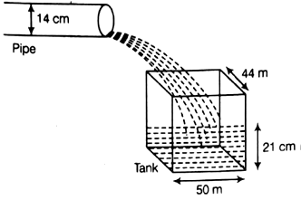 Water is flowing at the rate of 15 kmh-1 through a pipe of diameter 14 cm into a cuboidal pond which is 50 m long and 44 m wide. In what time will the level of water in pond rise by 21 cm?