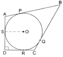 In the given figure, a circle is inscribed in a quadrilateral ABCD touching its sides AB, BC, CD and AD at P, Q, R and S respectively. lithe radius of the circle is 10 cm, BC = 38 cm, PB = 27 cm and AD⏊ CD then the length of CD is