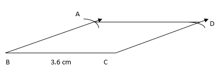 Construct a quadrilateral ABCD where AB = 4.2cm, BC = 3.6 cm, CD = 4.8 cm, B = 30° and C = 150°.