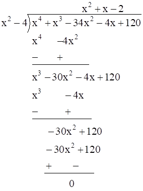 Let us assume f (x) = x4 + x3 ‒ 34x2 ‒ 4x + 120
