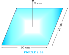 A point charge + 10 μC is a distance 5 cm directly above the centre of a square of side 10 cm, as shown in Fig. 1.34. What is the magnitude of the electric flux through the square? (Hint: Think of the square as one face of a cube with edge 10 cm.)