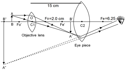 (a) The final image is formed at least distance of distinct vision, v2 = 25 cm