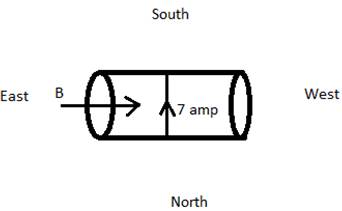 Since, the field is along east to west and current flows along north south, direction so, θ = 90°.