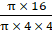 ∴ V1 = π × 12 × 16 (diameter is 2cm, ∴ radius is 1cm)