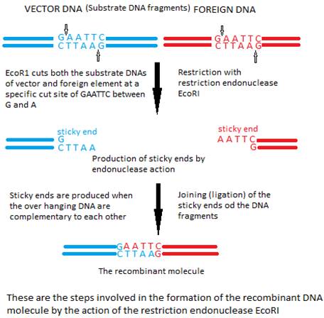 The action of restriction enzyme in the production of the recombinant DNA molecule is: