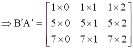 For the matrices A and B, verify that (AB)’ = B’A’, where