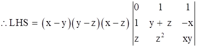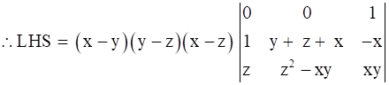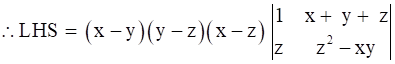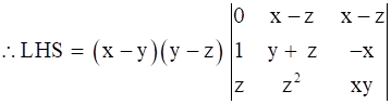 Therefore taking (x - y) and (y - z) outside the determinant from 1st and 2nd row respectively