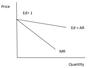 When demand curve is elastic, i.e. Ed > 1, the MR will be positive because for any value of Ed, 1/Ed will be less than 1.