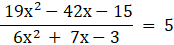 19x2 - 42x - 15 = 30x2 + 35x - 15 cross multiplying