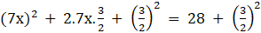 49x2 + 21x - 28 = 0 (multiplying both sides by 7)