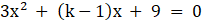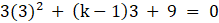If x = 3 is a solution of the equation 3x2 + (k – 1)x + 9 = 0 then k = ?