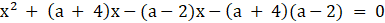 x[x + (a + 4)]-(a-2)[x + (a + 4)] = 0