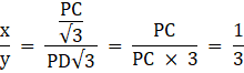The tops of two towers of heights x and y, standing on a level ground subtend angles of 30° and 60° respectively at the centre of the line joining their feet. Then, x : y is