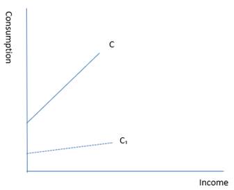 (i) When slope decreases – The consumption curve will swing downwards. This is known as parametric shift in the curve.
