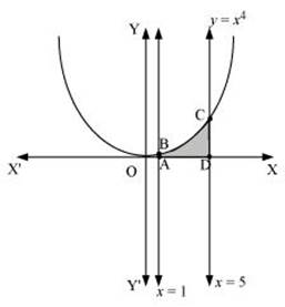 We can see from the figure that the area of the region bounded by the curve y = x4 and the lines x = 1, x = 5 is shown by shaded region that is Area ADCBA.