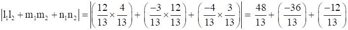 If l1, m1, n1 and l2, m2, n2 are the direction cosines of two lines; and θ is the acute angle between the two lines; then cos θ = |l1l2 + m1m2 + n1n2|
