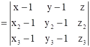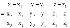Equation of the plane passes through the points, (x1, y1, z1), (x2, y2, z2) and (x3, y3, z3), i.e.,