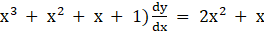 (x3 + x2 + x + 1) dy/dx = 2x2 + x, y = 1 when x = 0