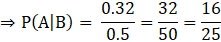 Given: P(B) = 0.5 and P(A ∩ B) = 0.32