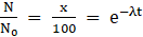 After time t if x% of it’s original value remains, and let λ be the decay constant