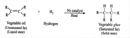 The addition of hydrogen to an unsaturated hydrocarbon in the presence of nickel (or palladium) catalyst to obtain a saturated hydrocarbon is called hydrogenation.
