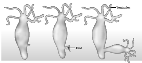 1. Arising of bulb like projection from the body of parent called as ‘bud’. The bud is single celled and is formed by mitotic division.