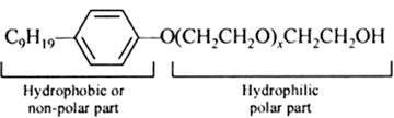 Following type of non-ionic detergents is present in liquid detergents, emulsifying agents, and wetting agents. Label the hydrophilic and hydrophobic parts in the molecule. Identify the functional group(s) present in the molecule.