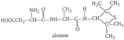 Alitame is a high potency artificial sweetener and it is not possible to control the sweetness imparted to food by alitame. Alitame is an artificial sweetener that is 2,000 times as sweet as sugar. This sweetness is very high as compared to the natural sugar and use of such sweetener is very critical while preparing sweet dishes. The structure of alitame is as follows: