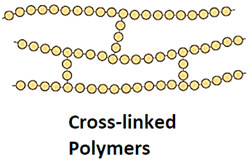 iii) Cross-linked or network Polymers: In these polymers, strong covalent bonds are between the linear chains. Generally, they contain 2 or 3 types of functional groups. Ex: Bakelite, melamine