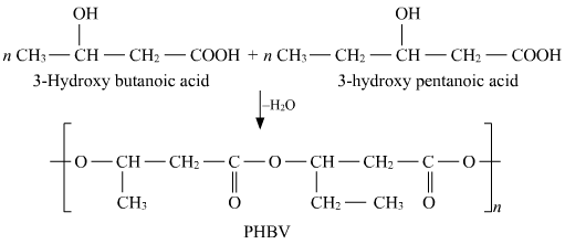 Biodegradable polymers are designed to degrade into simpler components like water, CO2, Nitrogen etc. upon disposal by the action of living organisms. Extraordinary progress has been made in the development of practical processes and products from polymers such as starch, cellulose, and lactic acid. The need to create alternative biodegradable water-soluble polymers for down-the-drain products such as detergents and cosmetics has taken on increasing importance. Aliphatic polyesters are one of the important classes of biodegradable polymer. Example. Poly β-hydroxybutyrate – co-β-hydroxy valerate (PHBV)