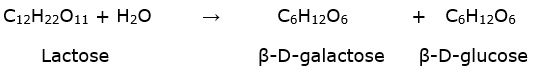 Lactose is a disaccharide carbohydrate(made up of two monosaccharide units) composed of β-D-galactose and β-D-glucose units. Hydrolysis breaks the glycosidic bond converting sucrose into β-D-galactose and β-D-glucose.