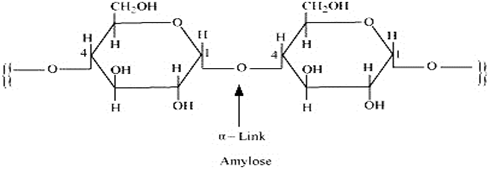 Starch consists of two components – amylase and amylopectin. Amylose is a long linear chain of α–D-(+)-glucose units joined by C1-C4glycosidic linkage (α -link).