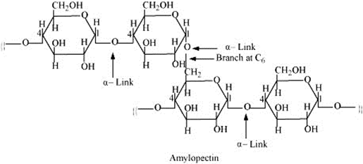 Amylopectin is a branched-chain polymer of –D-glucose units, in which the chain is formed by C1-C4 glycosidic linkage and the branching occurs by C1-C6 glycosidic linkage.