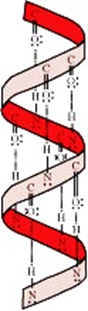 If the size of R-groups is quite large then the intramolecular bonds are formed between the C=O of one amino acid and the N-H group of the forth amino acid residue in the chain. This causes the polypeptide chain to coil up into a spiral structure called righ handed α-helix structure.