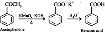 The oxidation with alcoholic KMNO4 followed by hydrolysis leads to the formation of benzoic acid. The reaction is given below: