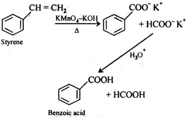 Here the oxidation of styrene with alcoholic KMNO4 is followed by hydrolysis leads to the formation of benzoic acid.