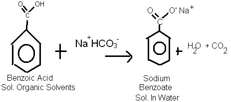 When we add NaHCO3 to acid solution it will produce effervescence of CO2 gas, hence benzoic acid will give CO2 gas and ethyl benzoate will not.