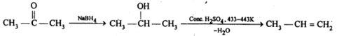 When propanone reacts with NaBH4 it will form propan-2-ol.This alcohol is dehydrated to form propene.