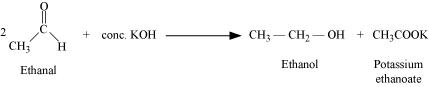 Aldeydes having no α-H undergo the disproportion reaction in the presence of Strong alkali, it is a chemical reaction that involves the base-induced disproportionation of a non-enolizable aldehyde This reaction is known as Cannizzaro reaction.In this reaction two molecules of aldehyde is reacted, 1 is reduced to alcohol and other is oxidized to carboxylic acid.