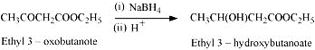 When Ethyl 3-oxobutanate is treated with sodium borohydride it converts oxo to hydroxyl.