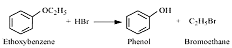 When Ethoxybenzene Reacts with HBr, it forms Phenol and bromoethane, Ethoxybenzene cleaves at O. H+ will attack at O, and Br- will attack C2H5+