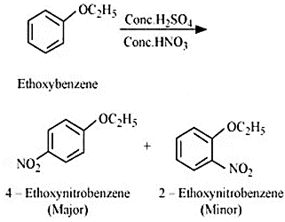 When nitrating mixture reacts with ethoxy benzene introduction of nitro group is occurred at para position as it will give the stable product without hindrance.