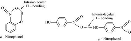 While separating a mixture of ortho and para nitrophenols by steam distillation, name the isomer which will be steam volatile. Give reason.
