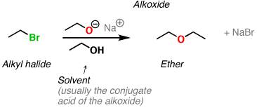 Williamson ether synthesis: It is an organic reaction forming ether from an organohalide and a deprotonated alcohol (alkoxide). Typically it involves the reaction of an alkoxide ion with primary alkyl halide via SN2 reaction.