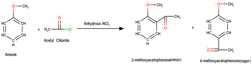 The Friedel-Craft’s acetylation of anisole gives 4- methoxyacetophenone as the major product.