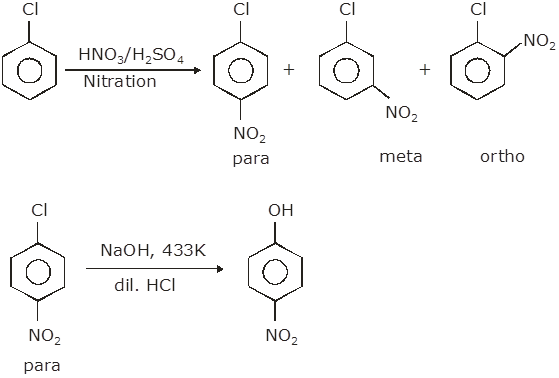 On invitation the nitronium ion is largely electrophile, in search of electron attaches to ortho and para position and some amount to meta, which upon reacting with aq. NaOH gives p-nitrophenol.