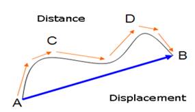 (a) The shortest path between two points in a travel is defined as Displacement and the actual path traveled is called Distance (or) Total length of the path in same interval.