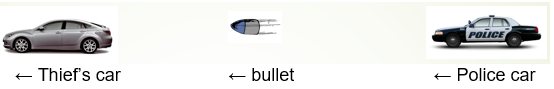 Since, both bullet and thief’s car moving in same direction, relative velocity of the bullet with respect to thief’s car is given by,